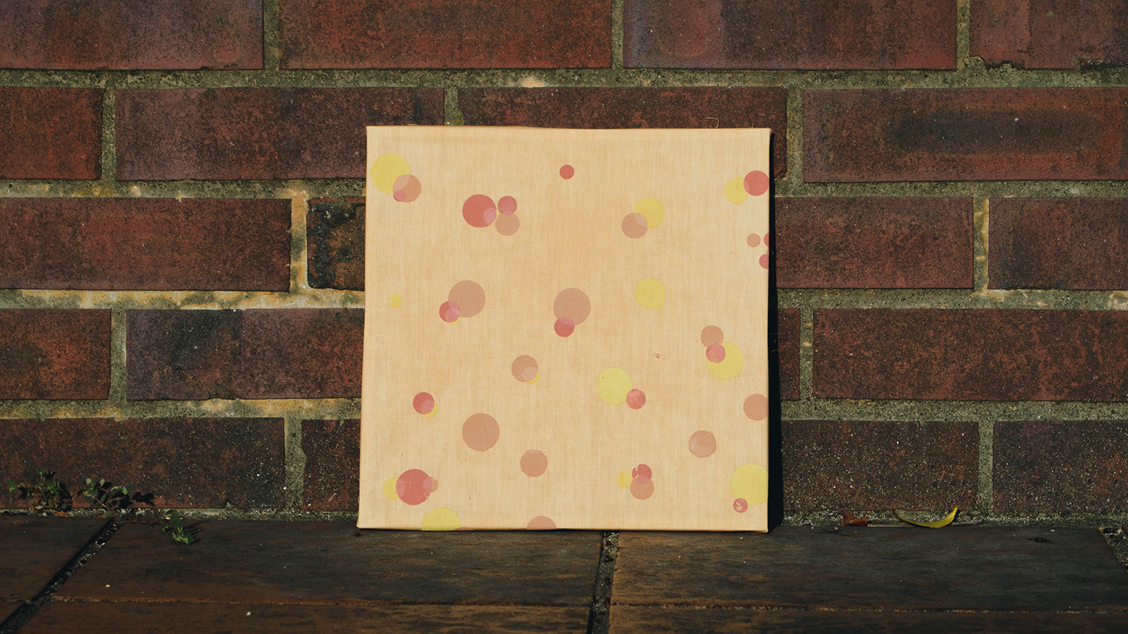 ホットミルクを飲んだときに体が温まる心地よさからこのテーマに決めました。ホットミルクを注いでから冷めるまでの時間経過を模様と色で表現しています。1つ目は注いだときのしずく、2つ目は注ぎ終わったときにできる泡、3つ目は冷ますために息を吹きかけたときの水面の模様、4つ目は冷めてできた膜の重なりを模様で表現しています。また、時間が経つごとにだんだんと暖色から寒色に近づいていくことでホットミルクの温度変化を表しています。